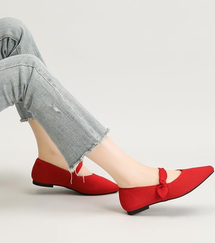 Women's Flats Mary Jane Ballet Knit Flats for Women Pointed Toe Comfortable with Bow Foldable Dressy Flats Slip On Casual Office Shoes 6