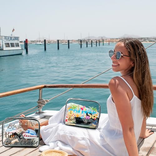 Y1tvei Cruise Clear Makeup Bag - 2Pcs Large Cruise Ship Essentials Travel Cosmetic Bag Survival Kit PVC Waterproof Toiletry Organizer Pouches Summer Beach Travel Accessories for Women Vacation 5