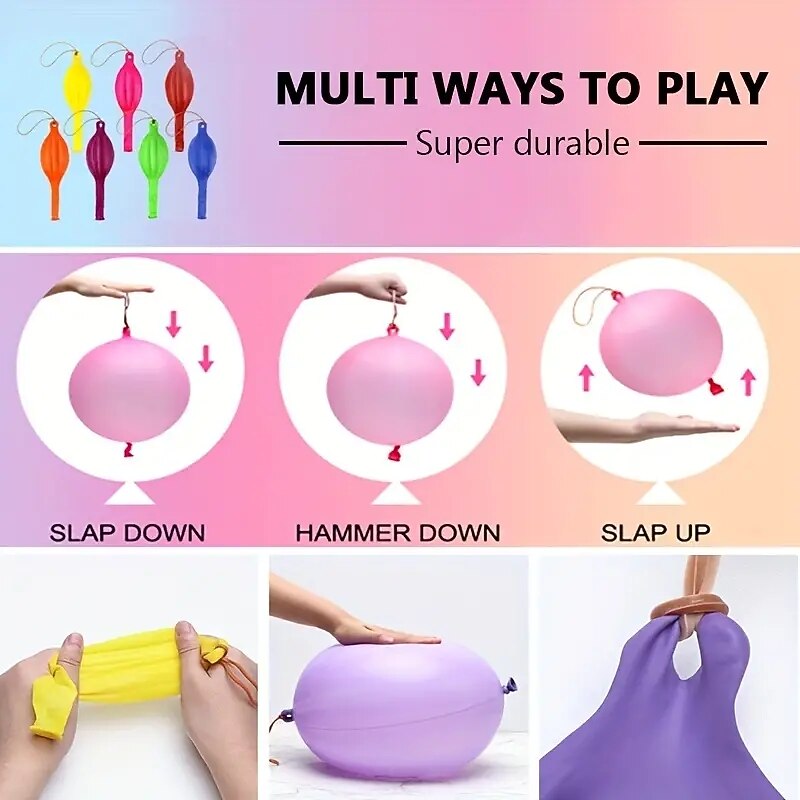 HOT ! 25pcs Punch Balloons Punching Balloon Heavy Duty Party Favors Bounce Balloons With Rubber Band Handle Rubber Balloon Bundle For Birthday Party Decor Holiday Accessory Party Pack Kids Outdoor Toys