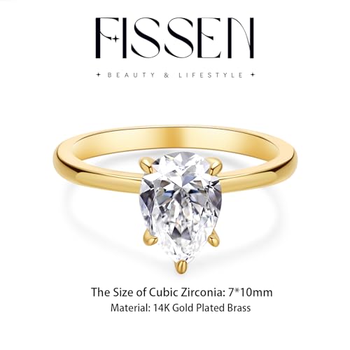 Engagement Rings for Women 14K Gold Plated Pear Cubic Zirconia Ring Dainty Gold Promise Ring Wedding Band Rings for Women Trendy Gold Jewelry 6