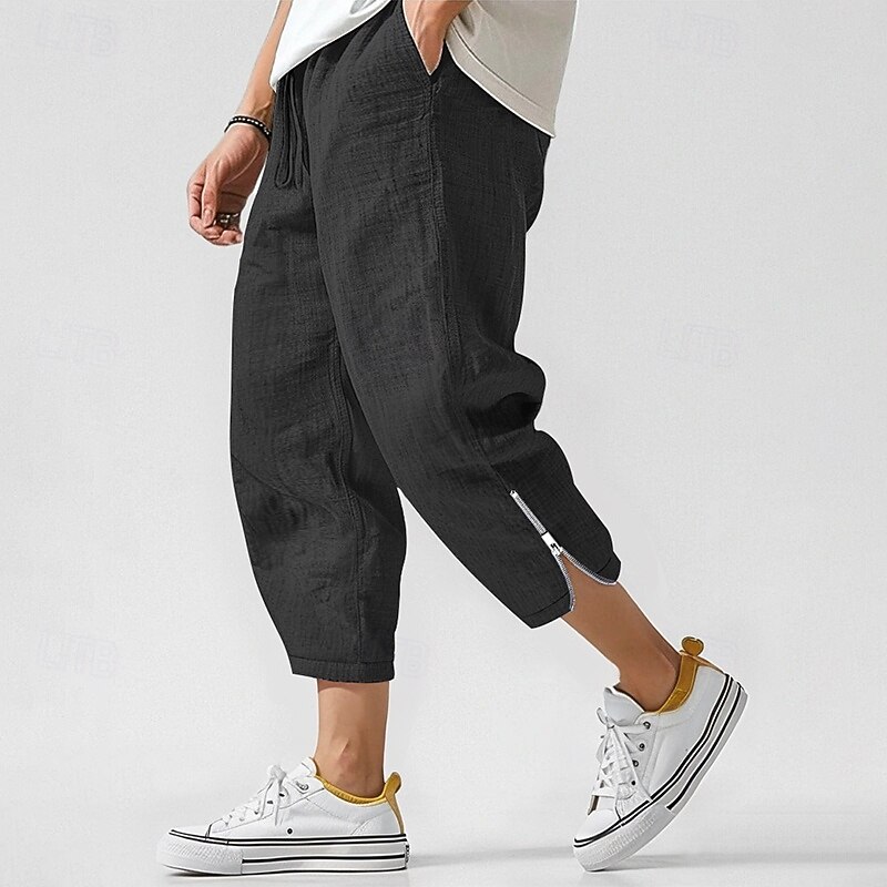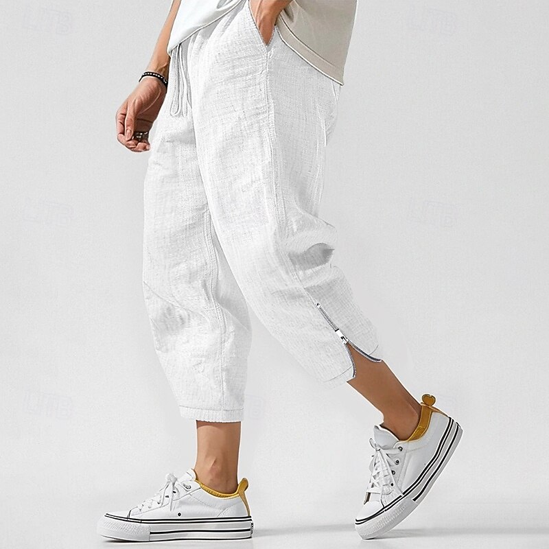 HOT ! Men's Linen Pants Trousers Summer Pants Beach Pants Zipper Drawstring Elastic Waist Plain Comfort Breathable Ankle-Length Casual Daily Holiday Fashion Classic Style Black White