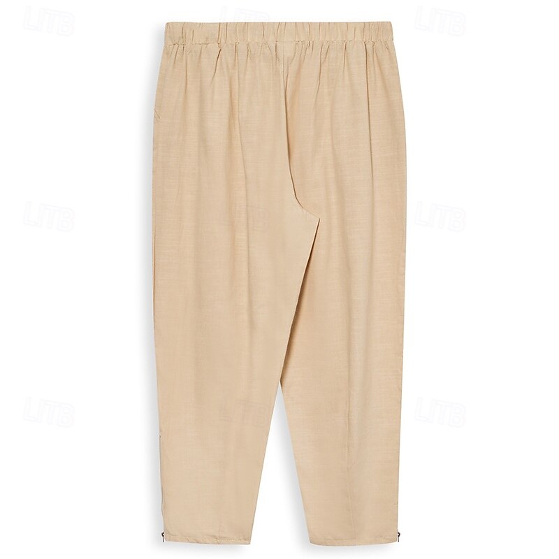 Men's Linen Pants Trousers Summer Pants Beach Pants Zipper Drawstring Elastic Waist Plain Comfort Breathable Ankle-Length Casual Daily Holiday Fashion Classic Style Black White 12