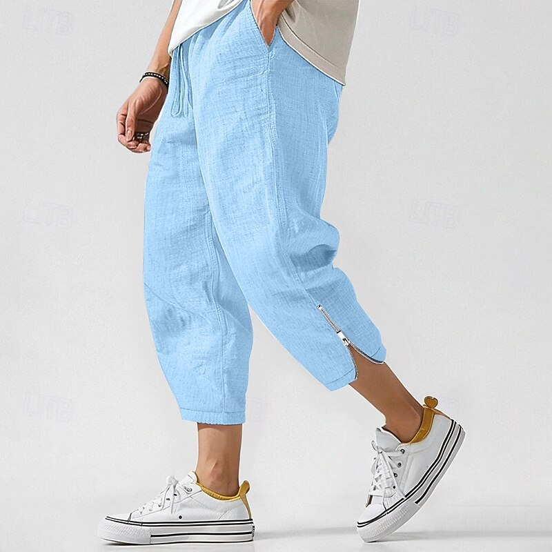 More information about Men's Linen Pants Trousers Summer Pants Beach Pants Zipper Drawstring Elastic Waist Plain Comfort Breathable Ankle-Length Casual Daily Holiday Fashion Classic Style Black White