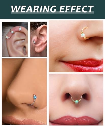 Opal Nose Rings Hoops and Corkscrew Nose Studs Sets for Women Men,Hypoallergenic 316L Surgical Stainless Steel Hinged Clicker Segment Nose Rings Hoop Helix Cartilage Daith Tragus Sleeper Earring