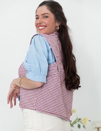 VAOYIU Womens Cropped Puffer Vest Lightweight Sleeveless Plaid Printed Cotton Quilted Vest Outwear 6