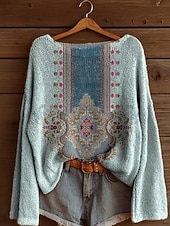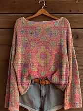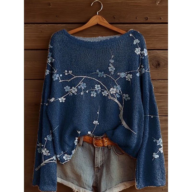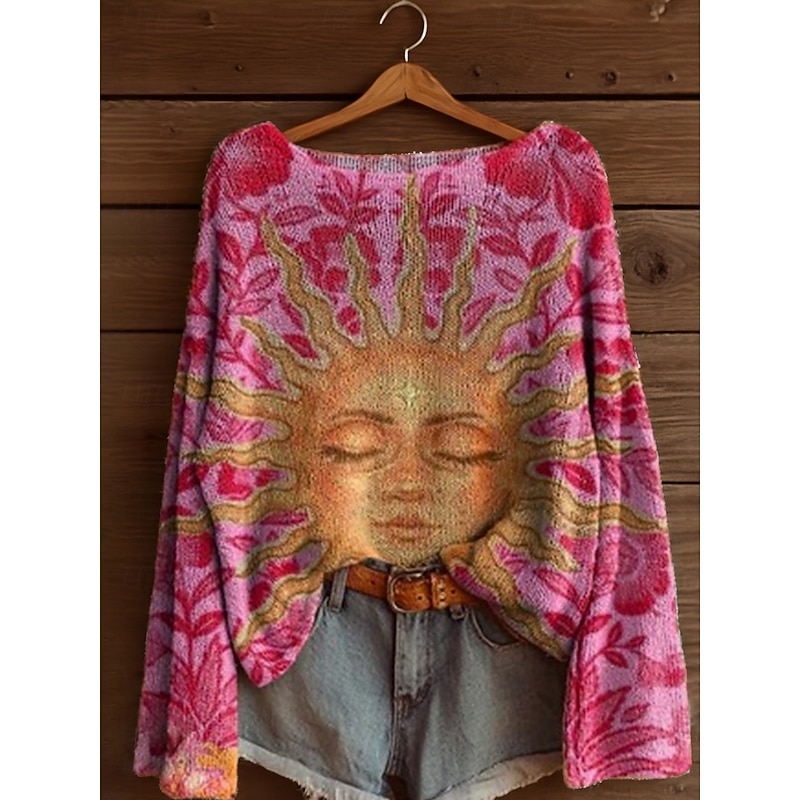 More information about Women's Sweater Casual Soft Floral Graphic Ribbed Boat Neck Knitted Print Long Sleeve Regular Tops Knit Outdoor Daily Weekend Pink Red Spring Fall
