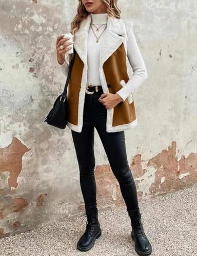 • Style: womens faux shearling vest lined jacket coat, fluffy fleece thermal fur lined sleeveless vest jacket