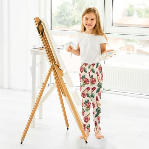 sizzling ! Red Roses Lipstick Girls Leggings Ultra tender Compression Yoga Gym Pants for Kids 4-10T