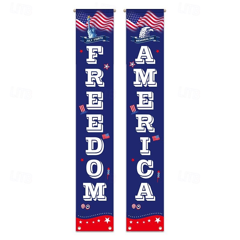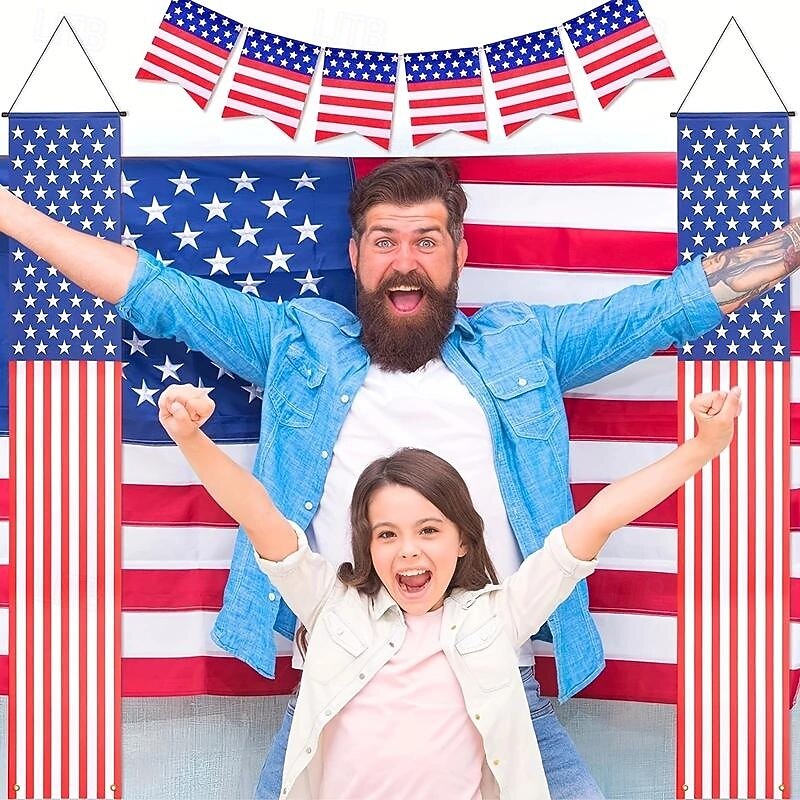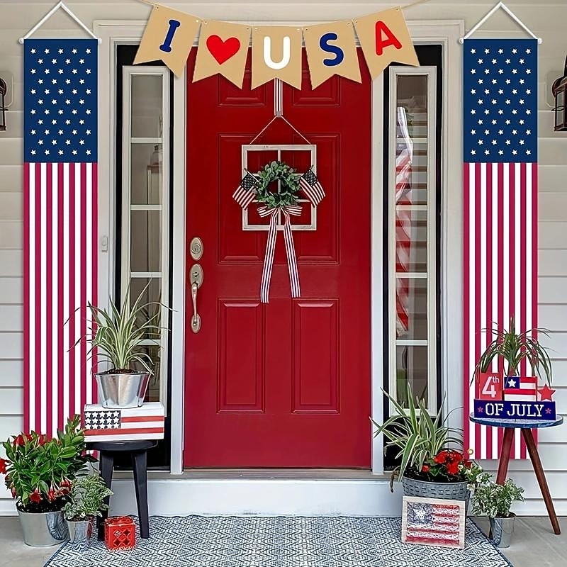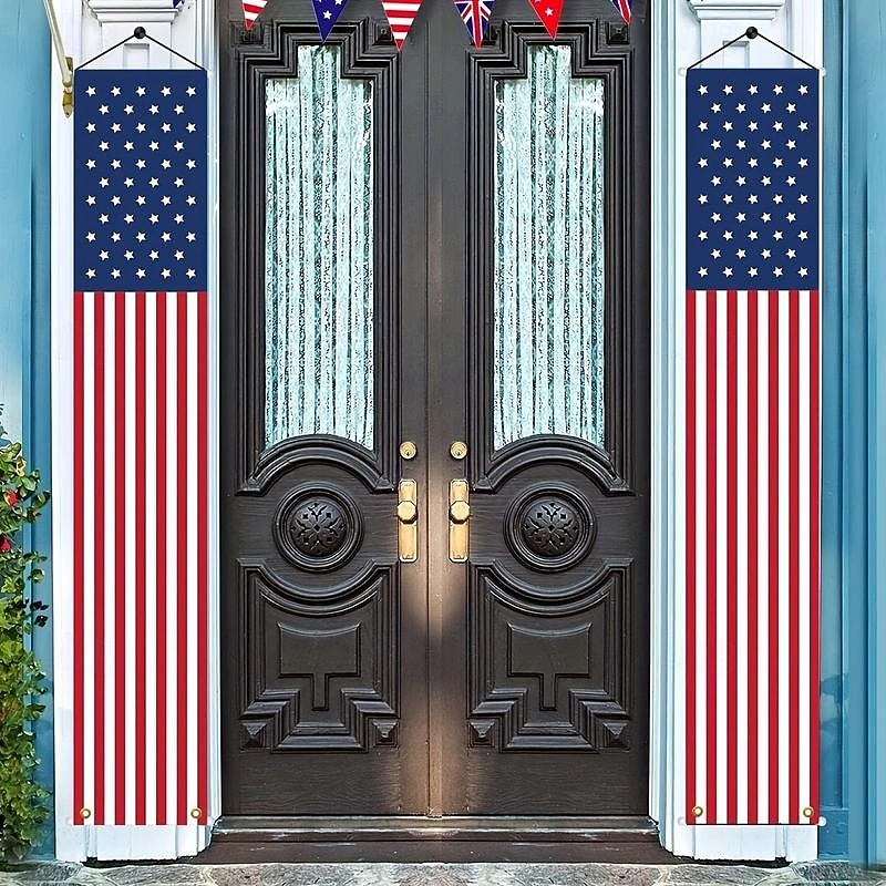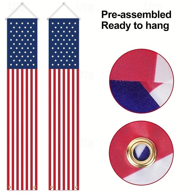 Patriotic Decorations 4th of July Decorations Outdoor Hanging American Flag Banners Porch Sign for Veterans Memorial Labor Presidents Flag Election Day 2