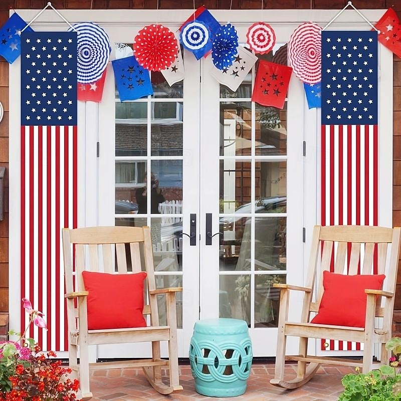 Patriotic Decorations 4th of July Decorations Outdoor Hanging American Flag Banners Porch Sign for Veterans Memorial Labor Presidents Flag Election Day 12