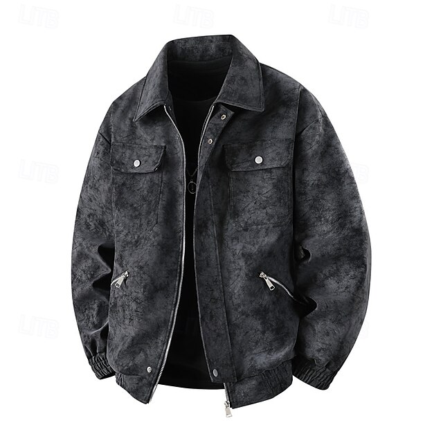 More information about Men's Jacket Casual Jacket Outdoor Vacation Warm Zipper Pocket Fall Winter Plain Fashion Streetwear Standing Collar Regular Black Brown Gray Jacket