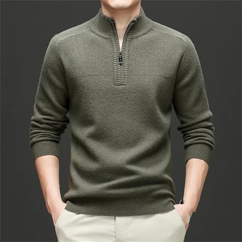 Men’S Solid Wool Thick Half-Zip Turtleneck Pullover Sweater Casual Long Sleeve Warm Knit Jumper Tops 1