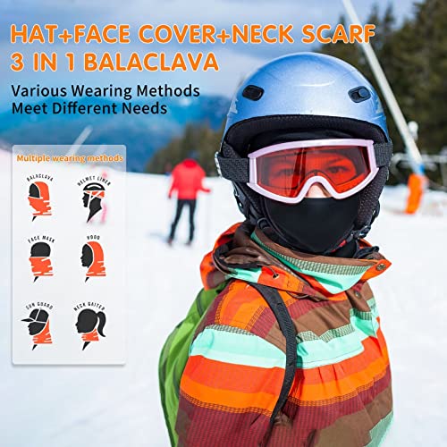 • Versatile and Helmet Friendly: The ski mask for kids has a wide variety of wearing ways, you can use it as ski mask, balaclava, ninja mask, full face cover, neck gaiter, face warmer scarf etc. It also can be used as helmet liners without any trouble. Ideal for various activities: Skiing, Biking, Hiking, Camping, Fishing etc. Give your kids pretty face and neck best protection, let them enjoy colorful outdoor sports!