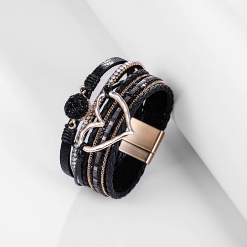 More information about Boho Bracelets for Women Cowboy Chic Leather Bracelet Western Jewerly Chunky Leather Warp Bracelet Stack Layered Heart Bangle Cowgirl Country Concert Outfits for Women