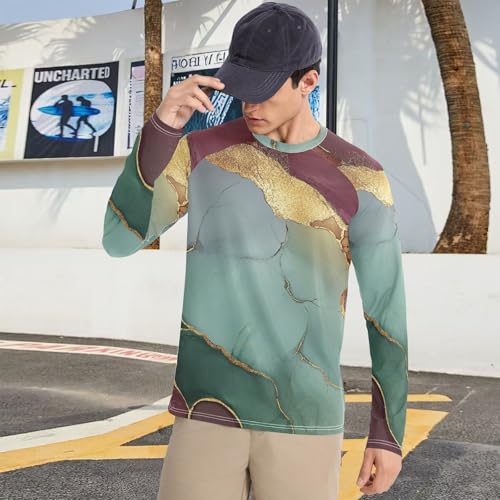 Marble Burgundy Sage Green UPF 50+ Sun Shirts for Men Elastic Round Neck Sun Protection Long Sleeve Outdoors