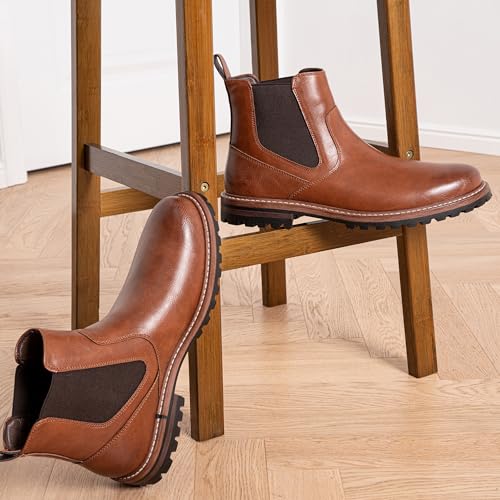 Jousen Chelsea Boots Casual Slip On Ankle Waterproof Mens Boots(AMY8406 brown 11.5) 4