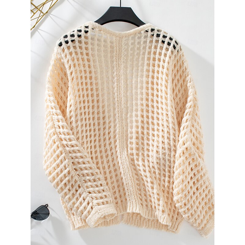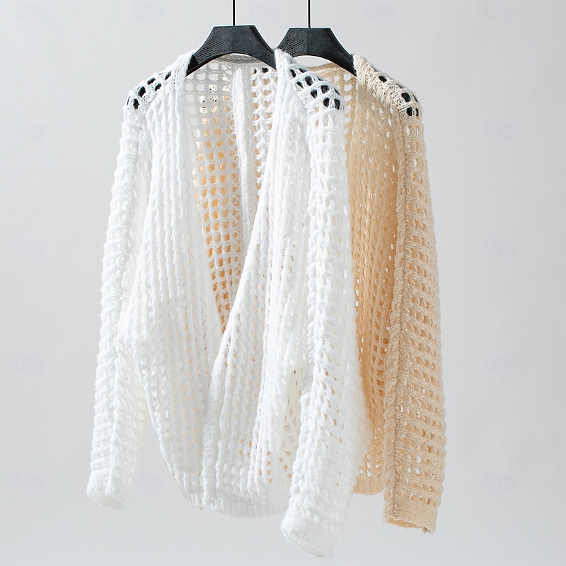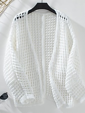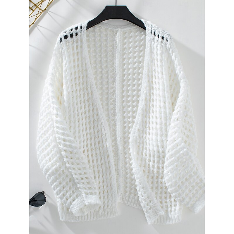 Highlights [Fabric] : Crafted from a smooth, lightweight material, this women's cardigan features a crochet knit design that ensures breathability and comfort, providing an airy look perfect for warmer weather. [Fit] : With its long, loose sleeves and open front, the cardigan is designed for a relaxed, loose fit, making it ideal for layering over various outfits for added comfort and style. [Design Highlights] : The cardigan boasts an open front design with a geometric knit pattern, adding a touch of sophistication and flair. Its versatile white and beige color options make it a staple choice for enhancing any casual ensemble. [Occasions] : Perfect for daily wear, outdoor activities, or casual outings during the summer and fall. This cardigan suits a wide range of occasions, offering effortlessly chic style for transitional weather. [Size Notice] : Available in sizes S, M, and L, ensuring a suitable fit for different body types and preferences, enhancing its appeal for versatile styling. Perfect for everyday use. superior materials and excellent craftsmanship ensure long-lasting durability.
