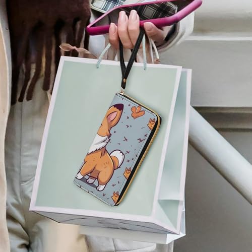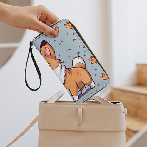 HOT ! Womens Leather Wallets with Wristlet Strap Corgi Wallet for Women Card Phone Holder Ladies Purse