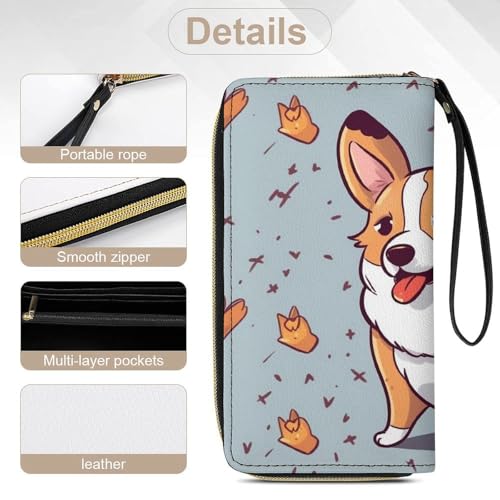 • 【Wristlet Women's Wallet】 The Corgi purse is made of high-quality PU leather, with sturdy wrist strap, safe and portable, easy to take cards, cash and other things.