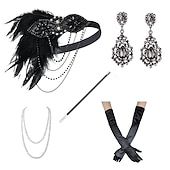 Vintage 1920s The Great Gatsby Flapper Headband Accessories Set Charleston Feather Fancy Dress Women's Masquerade Bachelorette Party Festival Adults' Gloves Headband All Seasons 16
