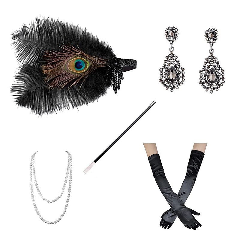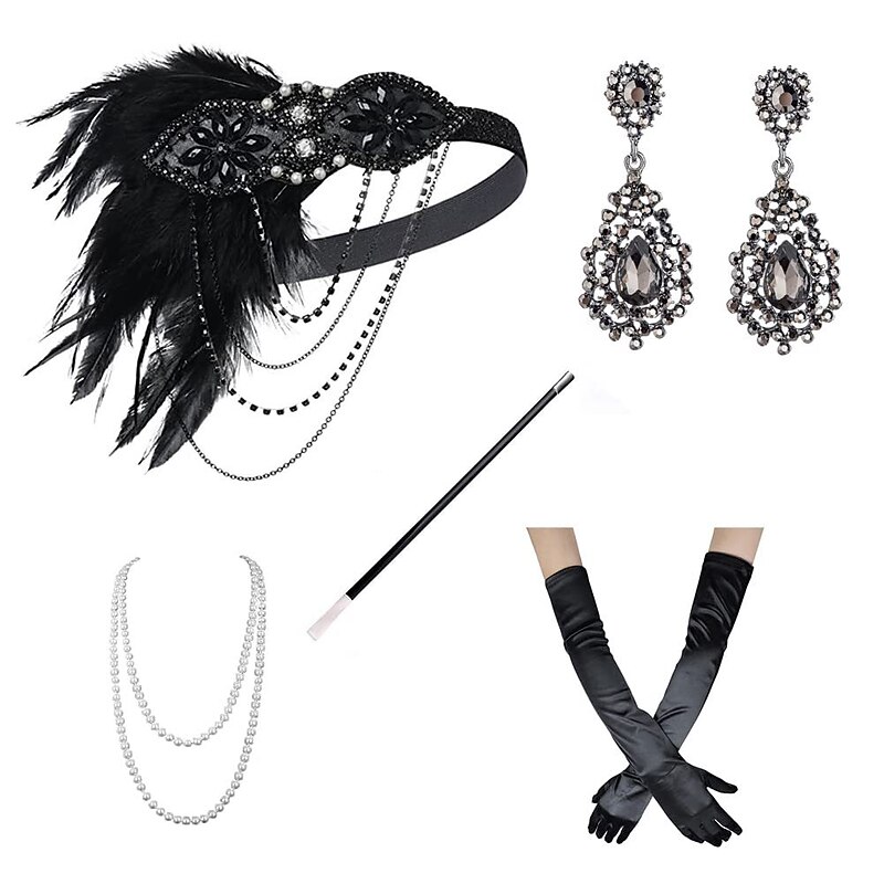 Vintage 1920s The Great Gatsby Flapper Headband Accessories Set Charleston Feather Fancy Dress Women's Masquerade Bachelorette Party Festival Adults' Gloves Headband All Seasons 6