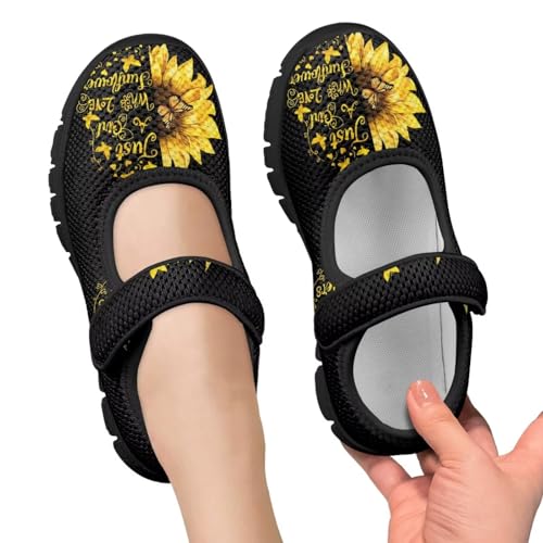 Girl's Plant Pattern Running Shoes Flat Non Slip Sports Shoes Comfort Mary Jane Shoes Magic Sticker Loafers