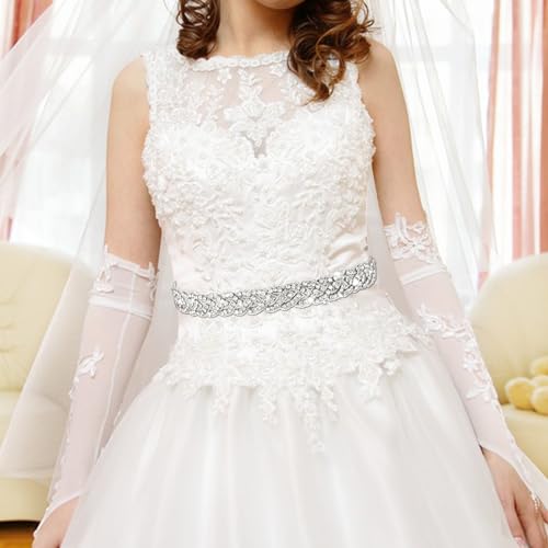 More information about Bridal Wedding Waist Belt Silver Glitter Rhinestone Sash Belt Handmade Ribbon Crystal Belt for Bride Women