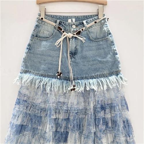 HOT ! Women's Tassel Hem Denim Skirt, Tie-Dye Patchwork Boho Summer Skirt