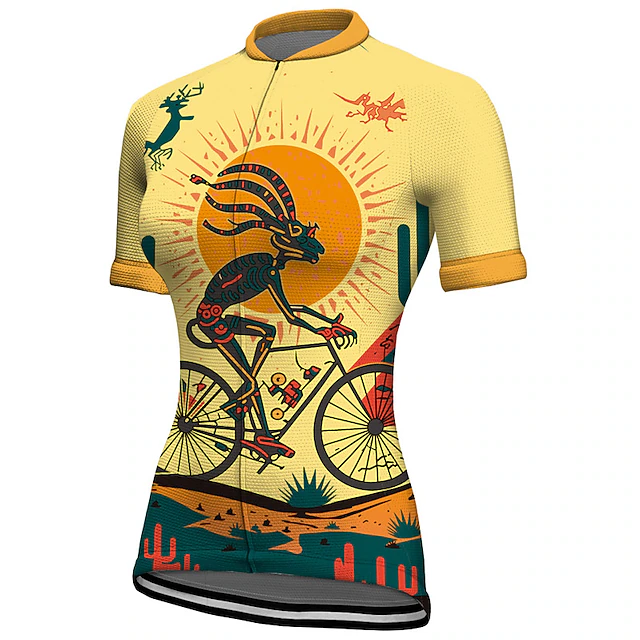 Women's Cycling Jersey Graphic Short Sleeve Bike Jersey Top with 3 Rear Pockets Mountain Bike MTB Road Bike Cycling Quick Dry Reflective Strips Back Pocket Moisture Wicking Sports Yellow Mint Green 7