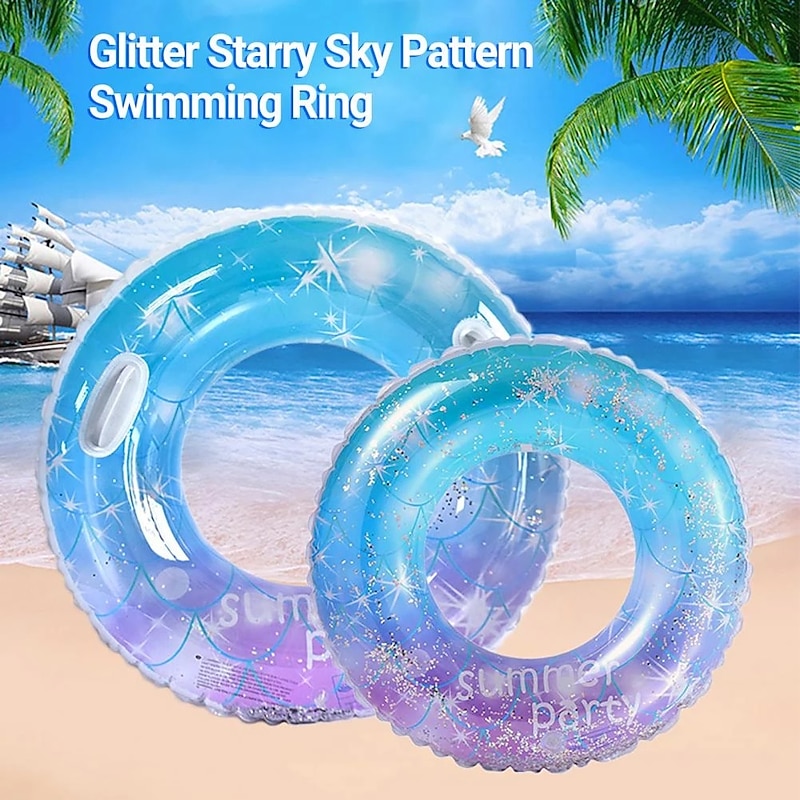 HOT ! Pool Floats Adults Float Glitter Starry Sky Pattern Swimming Ring with Handle Strong Buoyancy Inflatable Pool Tube Water Fun Toy for Swim
