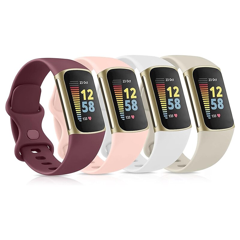 4 Pack 3 Pack 2 Pack Smart Watch Band Compatible with Fitbit Charge 5 Silicone Smartwatch Strap Adjustable Sport Band Replacement  Wristband 28