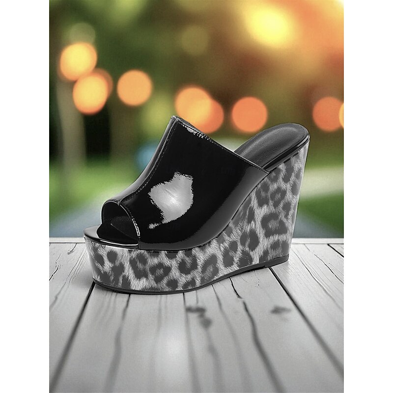 Women's Red Patent Leather Wedge Sandals - Peep Toe Leopard Print Platform Party Shoes for Nightlife and Clubwear 12