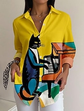 More information about Women's Shirt Button Down Tunic Shirt Collar Long Sleeve Graphic Animal Abstract Active Vintage Cute Regular Tops Work Daily s Print Yellow Spring Fall Winter