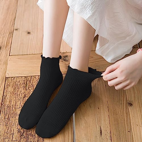 DOOVID Cotton Ankle Socks - Ruffle Crew Style, Cute Lettuce Frilly Socks - Athletic Socks for Women & Girls
