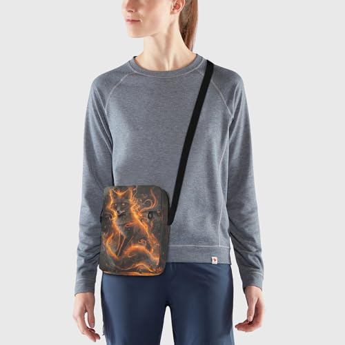 HOT ! Crossbody Bag Neon Glowing Fire Fox Animal Messenger Bag for Women Men Purse Shoulder Bag Satchel Bag with Adjustable Strap 214B5954