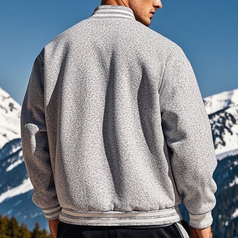 Men's Casual Jacket Varsity Jacket Vacation Daily Warm Pocket Fall Winter Stripe Fashion Classic Standing Collar Regular Black Red Navy Blue Royal Blue Light Grey Jacket 3