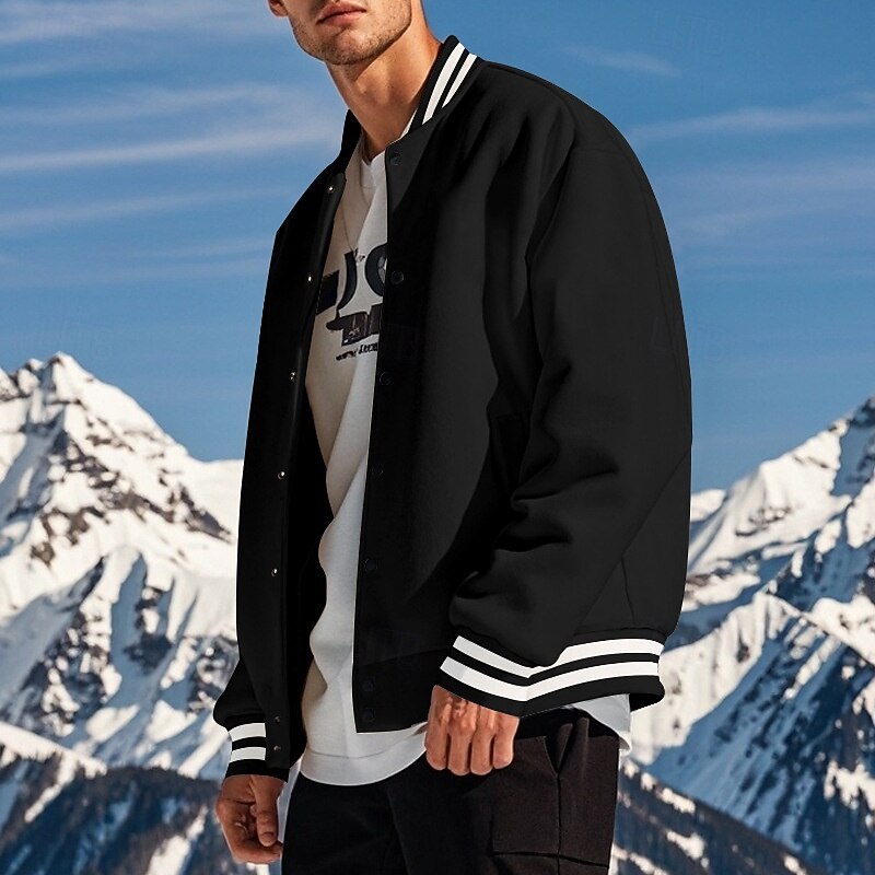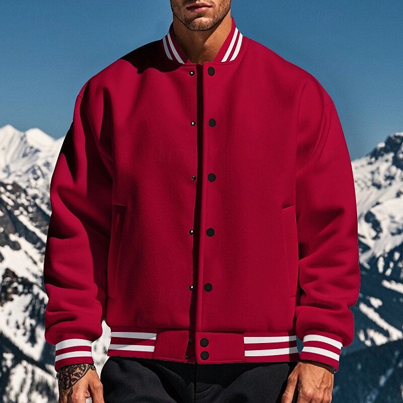 HOT ! Men's Casual Jacket Varsity Jacket Vacation Daily Warm Pocket Fall Winter Stripe Fashion Classic Standing Collar Regular Black Red Navy Blue Royal Blue Light Grey Jacket