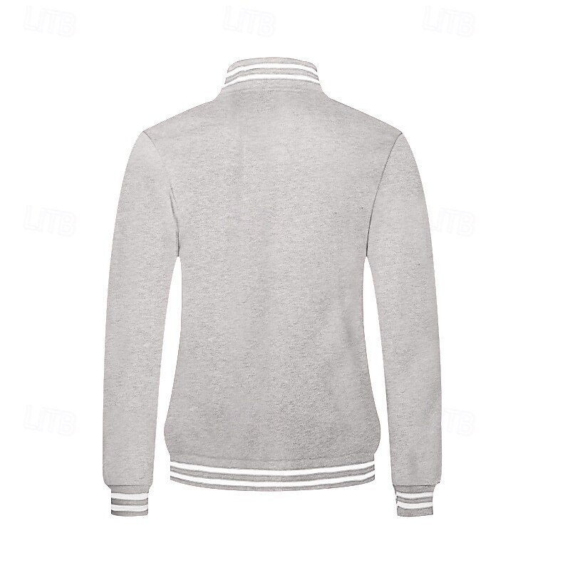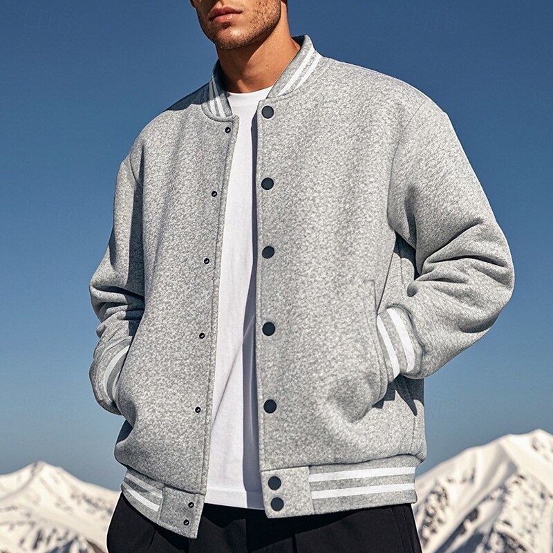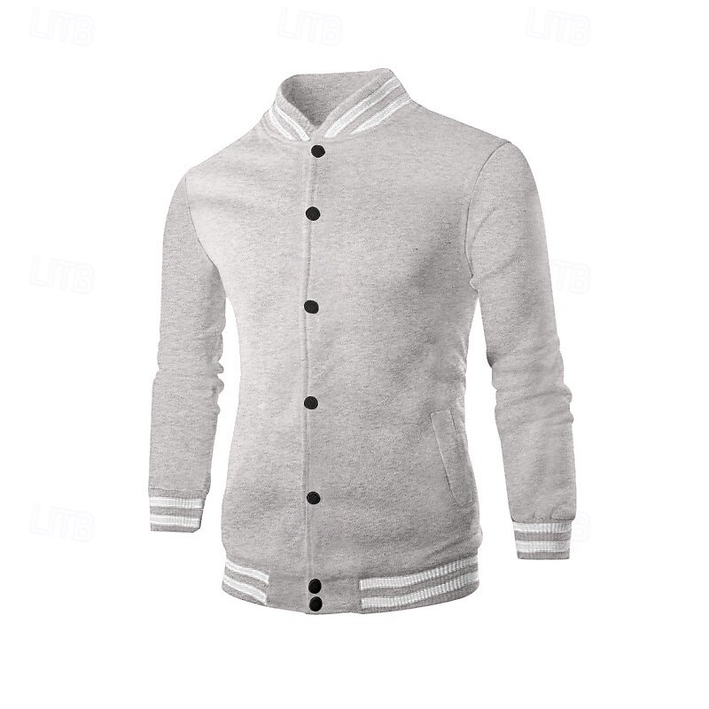More information about Men's Casual Jacket Varsity Jacket Vacation Daily Warm Pocket Fall Winter Stripe Fashion Classic Standing Collar Regular Black Red Navy Blue Royal Blue Light Grey Jacket