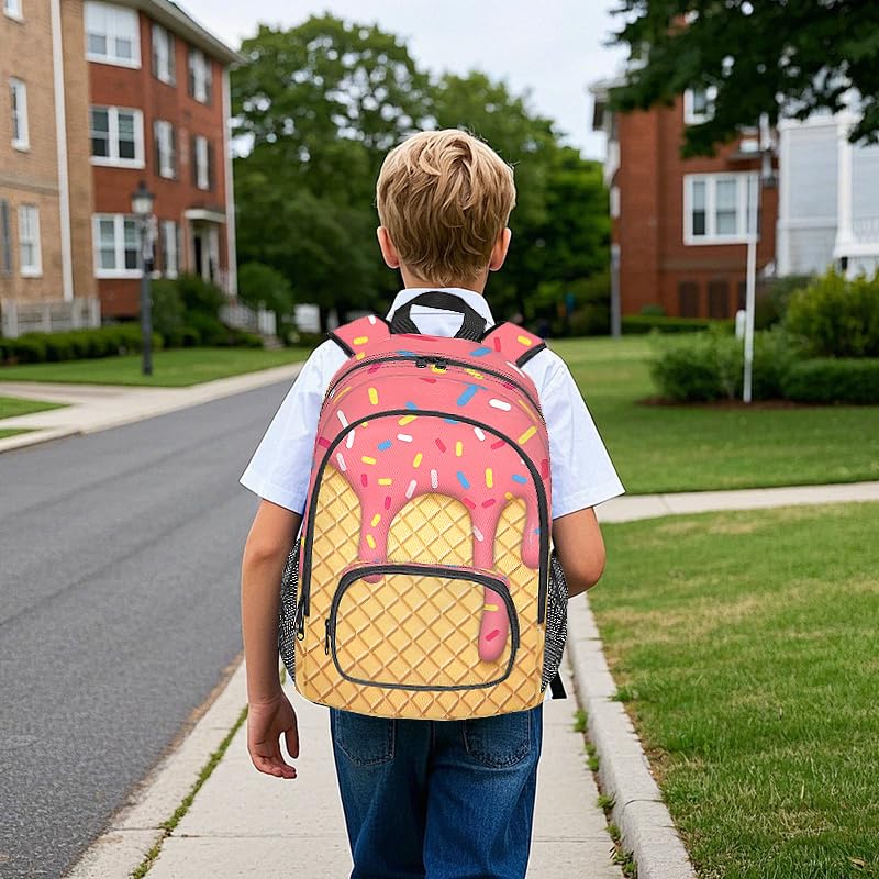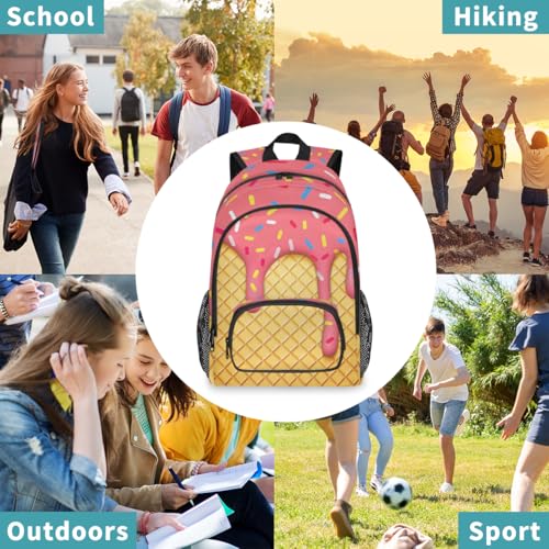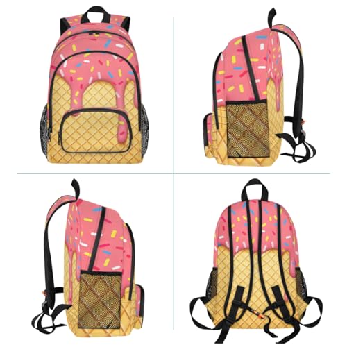 School Backpack Casual Bookbag with Multiple Pockets 18 inch Laptop Backpacks for Travel Hiking, Schoolbag for Students Girls Boys Women Men, Pink Ice Cream 1