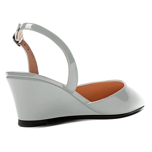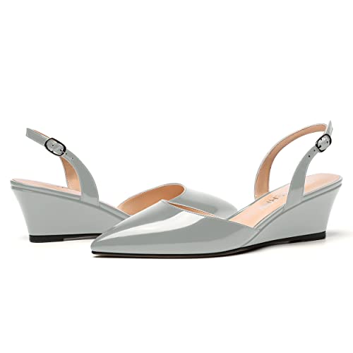 SKYSTERRY Women's Patent Slip On Pointed Toe Wedding Casual Slingback Wedge Low Heel Pumps Shoes 2 Inch 5