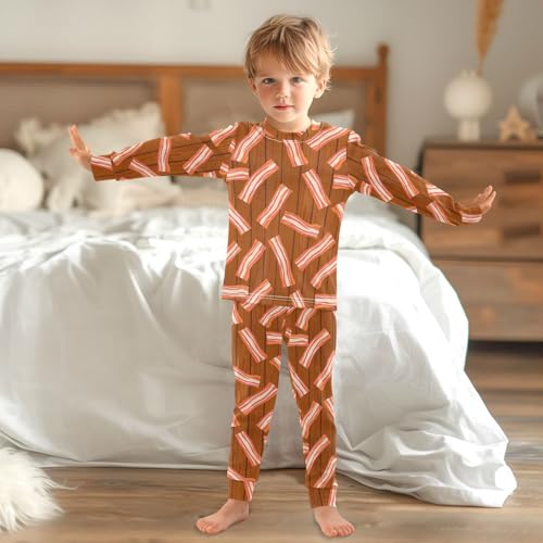 HOT ! Pajama Sets Long Sleeve Bacon Strips Wood Background Soft Comfy Sleepwear 2 Piece PJS 3-8T