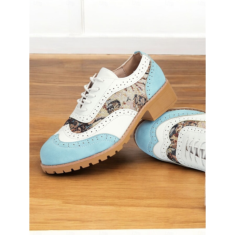 Women's Retro Oxford Shoes - Lace-Up Brogue Style with Floral Prints and Color Block Design for Casual Outfits 1