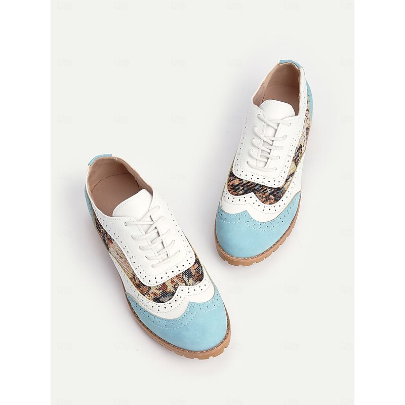 Women's Retro Oxford Shoes - Lace-Up Brogue Style with Floral Prints and Color Block Design for Casual Outfits 11