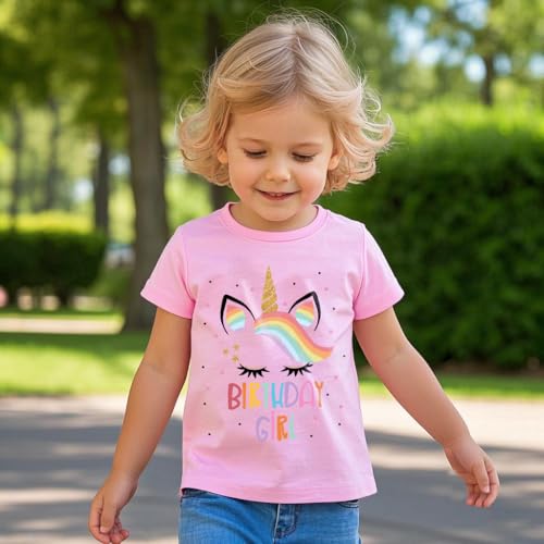 Birthday Girl Shirt 2nd 3rd 4th 5th 6th 7th Girls Birthday T-Shirts Toddler Mermaid Unicorn Cotton Short Sleeve Tee Tops