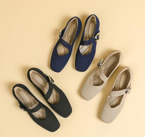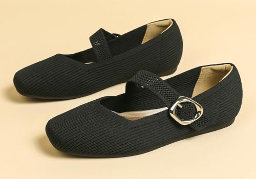 Knit Ballet Flats for Women Casual Square Toe Flat Shoes Comfort Walking Flats Shoes Dressy Outdoor Mary Jane Shoe 2025