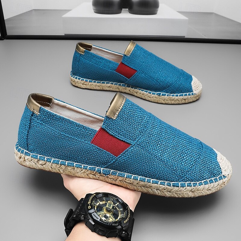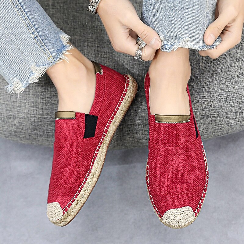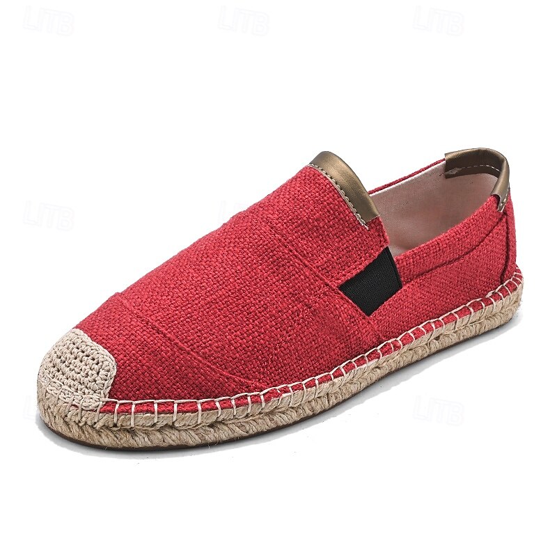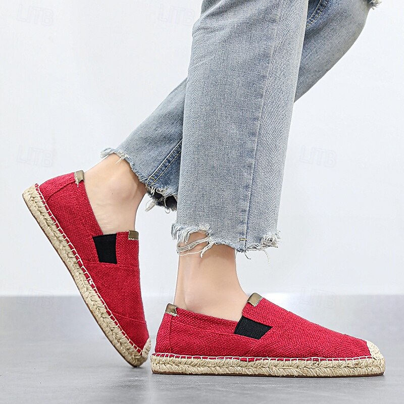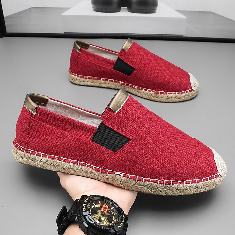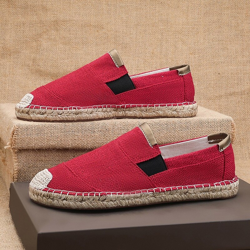 HOT ! Men's Red Espadrille Slip-On Shoes with Jute Sole - Comfortable and Fashionable Summer Shoes for Everyday Use