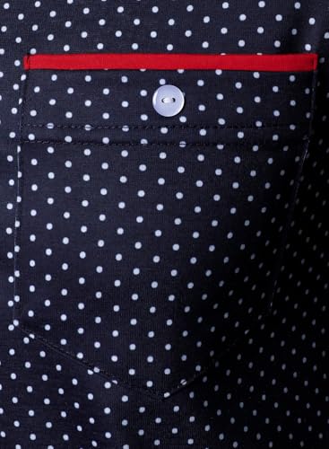 • Stylish Design: Vintage stylish polka dots printed, contrast color design on collar band, 1 chest pocket , turn down collar,front buttons up, slim fit, long sleeves.