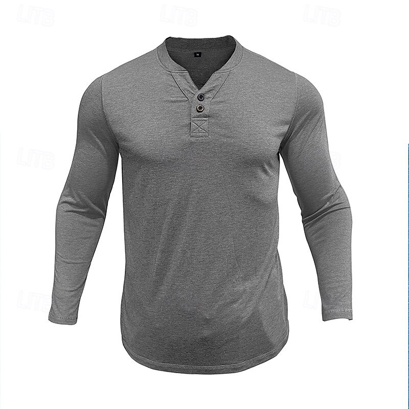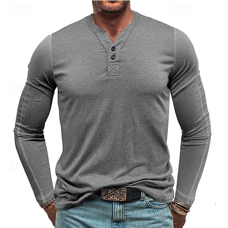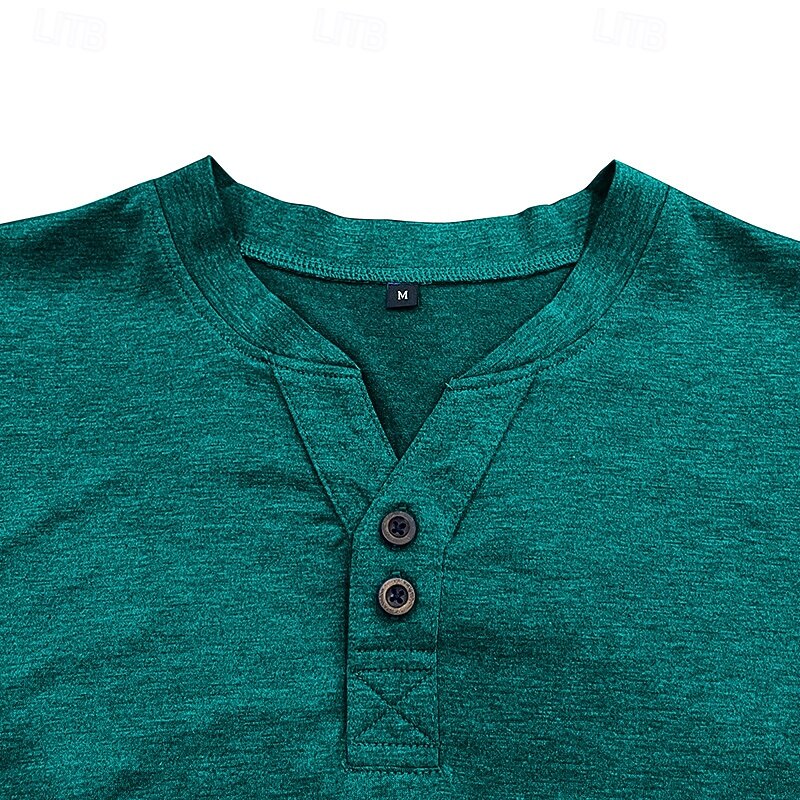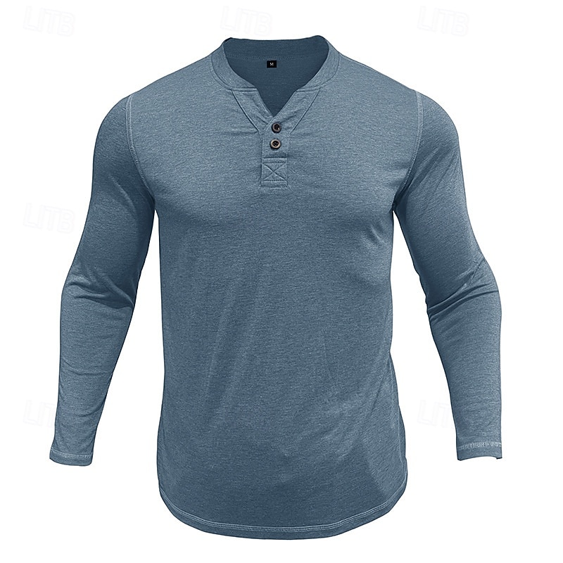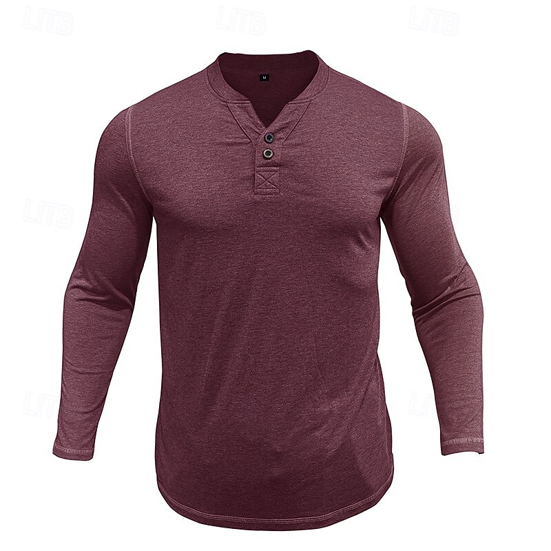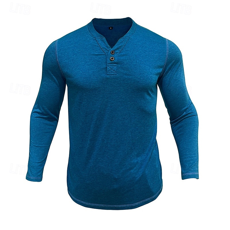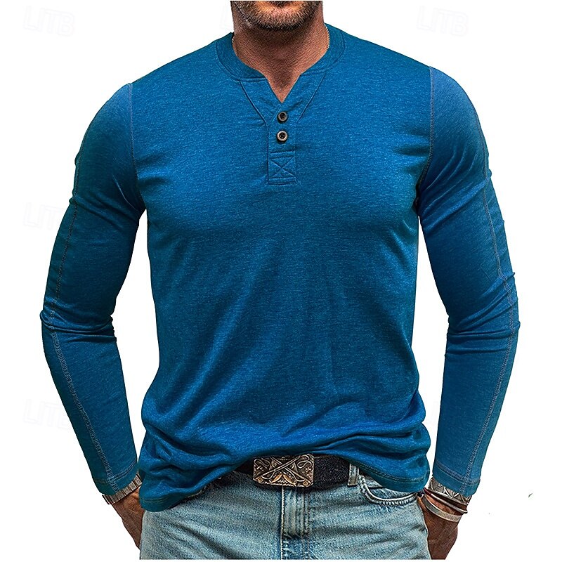 More information about Men's Button T Shirt T Shirt Henley Shirt Tee Long Sleeve Henley Spring & Fall Plain Fashion Designer Basic Vacation Street Going out Lake blue Wine Blue Top Tee for Men