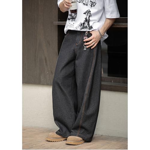 • Features: Baggy jeans for men y2k with an elastic waist is comfortable and gives a good fit. High rise wide leg jeans, loose fitting, full length, pull on denim pants, teen boys barrel pants with pockets.