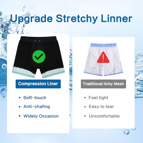• ELASTIC WAISTBAND with DRAWSTRING - 2 in 1 mens swim suit fit the body very well and have an excellent wearing feeling, because the swimming trunks are design with drawstring closure & elastic waistban
